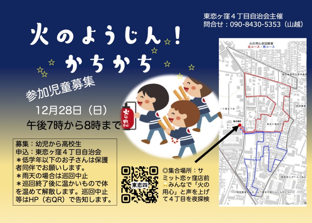 - 「戸じまりようじん・火のようじん」(次回は12月末に実施予定)(参加フォームで申込ください)