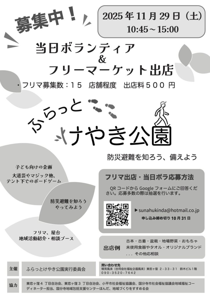 - 「フラットけやき公園」(11月29日)に協力団体として取り組んでいます。